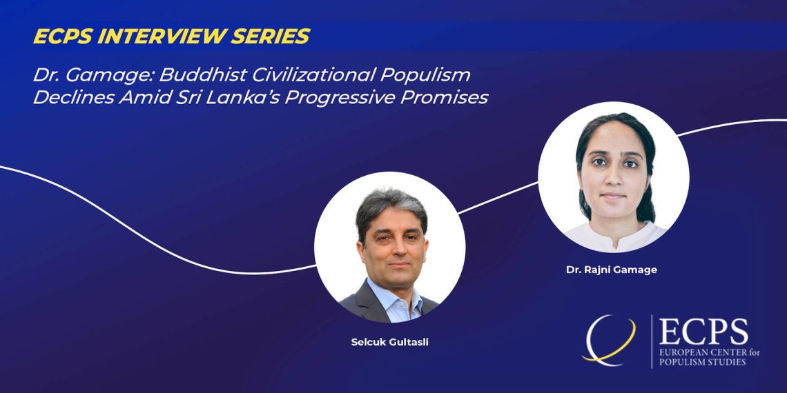 In a thought-provoking interview with the European Center for Populism Studies (ECPS), Dr. Rajni Gamage, a Research Fellow at the Institute of South Asian Studies, National University of Singapore (NUS), offered an incisive analysis of Buddhist civilizational populism in Sri Lanka. She highlighted how this ideological force has shaped the country’s political and social dynamics, particularly its impact on the marginalization of minority communities.