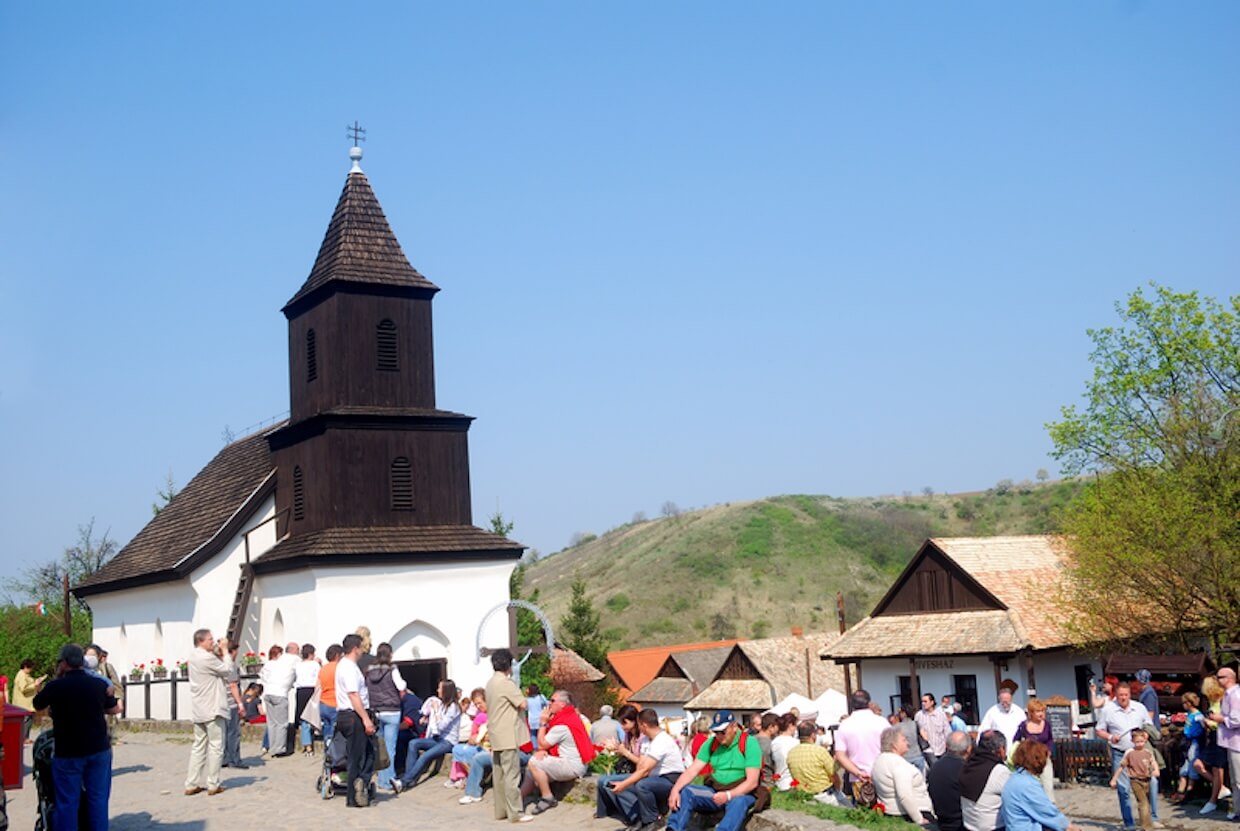 Tourists visit the medieval wooden church during the Easter Festival in Hollókö, Hungary, a UNESCO World Heritage village, on April 12, 2009. Photo: Attila Jandi.