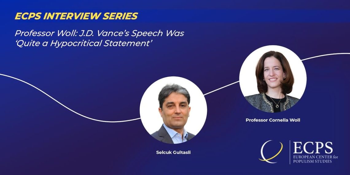 In a striking critique of US Vice President J.D. Vance, Professor Cornelia Woll, President of the Hertie School in Berlin and a leading expert on international political economy, described his speech at the Munich Security Conference as “quite a hypocritical statement.” Speaking with the European Center for Populism Studies (ECPS) on Thursday, Professor Woll dissected the contradictions in Vance’s rhetoric, particularly his claims that Europe’s speech restrictions pose a greater threat than military aggression from Russia or China.