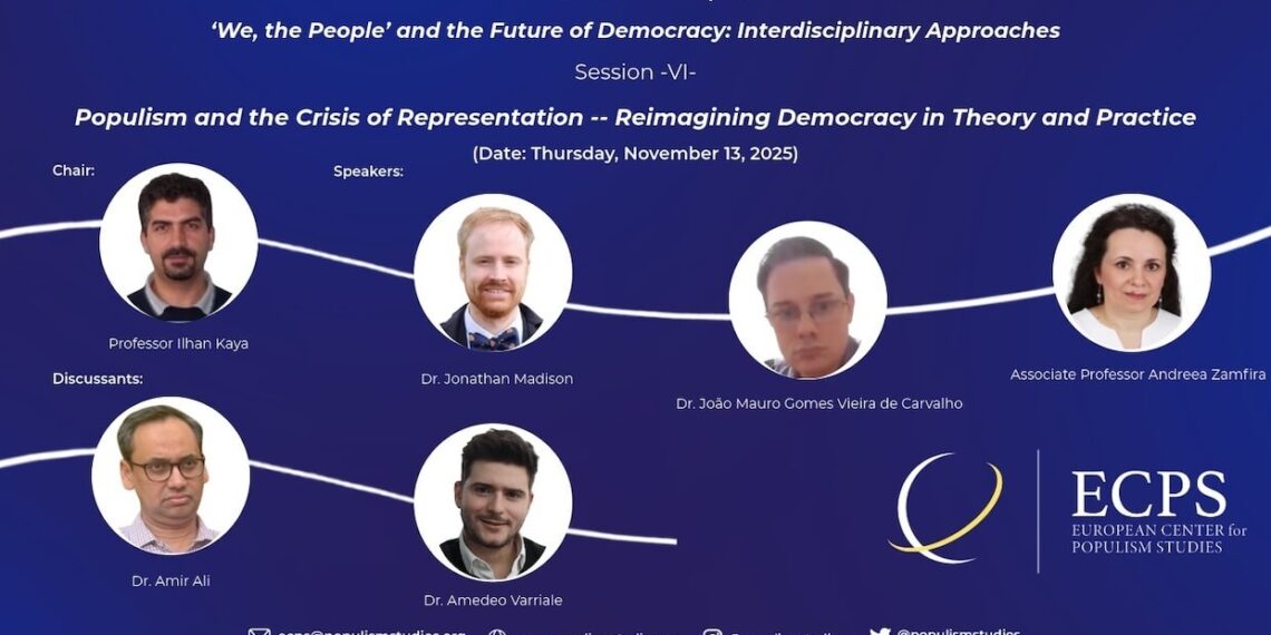 On November 13, 2025, the European Center for Populism Studies (ECPS), in collaboration with Oxford University, convened Session 6 of its ongoing Virtual Workshop Series, “We, the People” and the Future of Democracy: Interdisciplinary Approaches. This session, titled “Populism and the Crisis of Representation: Reimagining Democracy in Theory and Practice,” brought together a distinguished group of scholars from political science, sociology, and democratic theory to examine one of the defining questions of our age—how populism both reflects and reshapes the crisis of democratic representation.